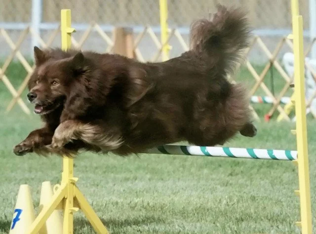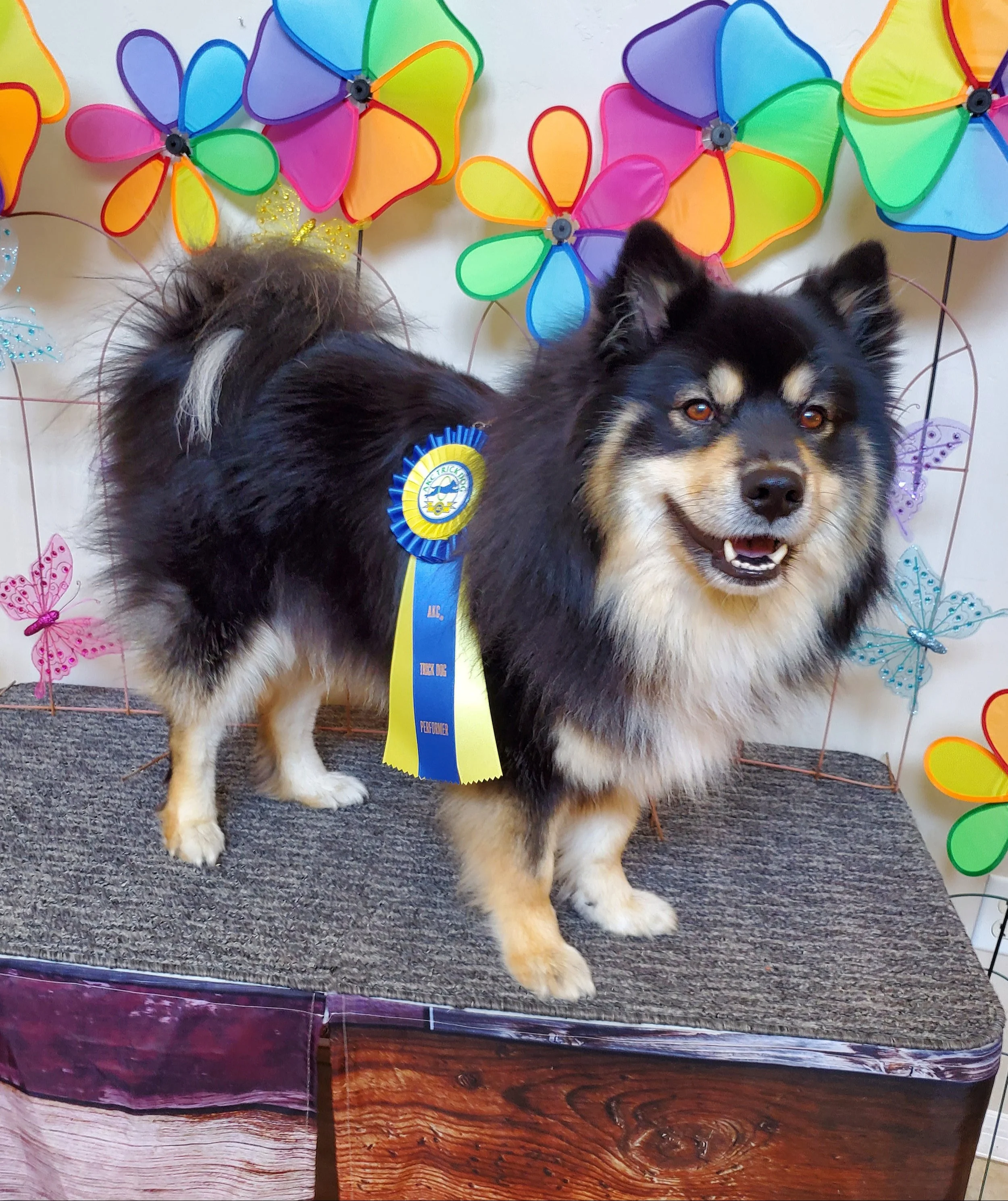He is the first Finnish Lapphund to win a OTCH (Obedience Trial Champion, obedience),UDX (utility dog excellent, obedience), and OM (obedience master, obedience). He also earned a MACH (master agility champion, agility) and a PACH (preferred agility champion agility). He competed and placed (4th in the herding group, 12th nationally) in the Obedience Championships in 2013. He competed in the Agility Nationals in 2015 ending up 13th nationally for his jump height. He is truly a trail blazer for the breed.